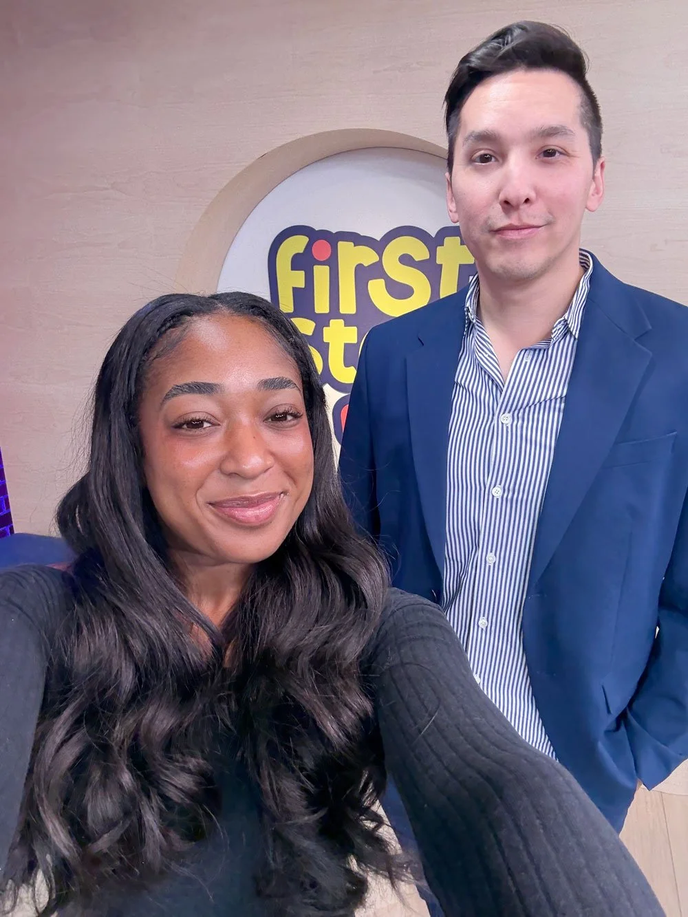 Co-Hosts Ryan Willard and Kelsey Russell at First Stop News' Studio, New York City.